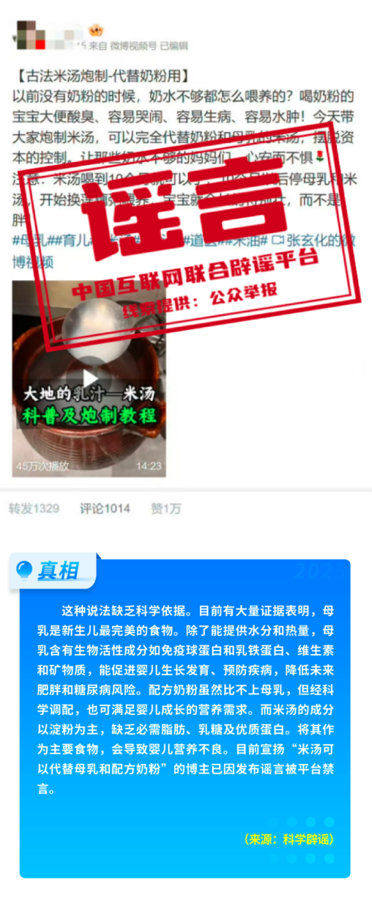 伪科普误导公众融会。部分网民诓骗专科界限信息差,曲解科学主意或传播非常常识。谣喙“95号汽油更耐烧”诓骗车主对油耗的关注,欺凌汽油标号(异辛烷比例)与废弃后果的主意,传播非常融会。谣喙“暴雨时躲在车内更安全”拦阻防汛自救原则,可能导致公众在极点情况下作念出非常遴荐,危害生命。值得关注的是,近期网上还出现“米汤可代替母乳和奶粉喂养孩子”“植物奶不错替代配方奶粉”“纯素食不错知足孕期一齐养分需求”等系列谣喙,打着“中医”“科普”旗子,宣扬非常喂养常识,严重误导母婴群体,宣扬该不雅点的博主已因发布谣喙被平台禁言。